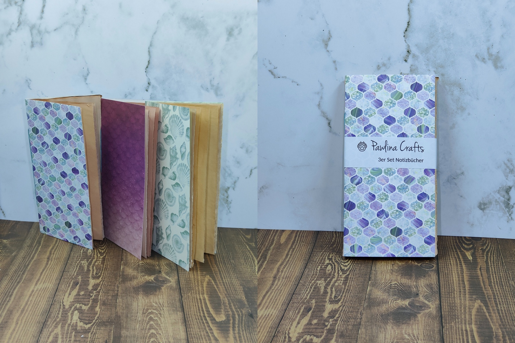 Ich verwende beim Buchbinden oft Reste von Karton, Stoffen oder Papier. Das bedeutet, dass fast alles Unikate sind. Bei Interesse schreibt mich doch einfach an (info@pawlinacrafts.ch).