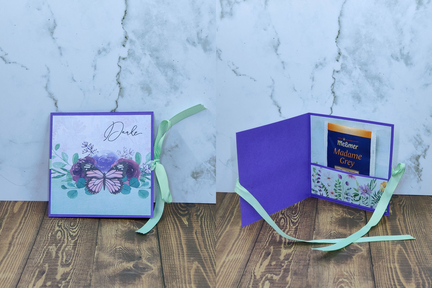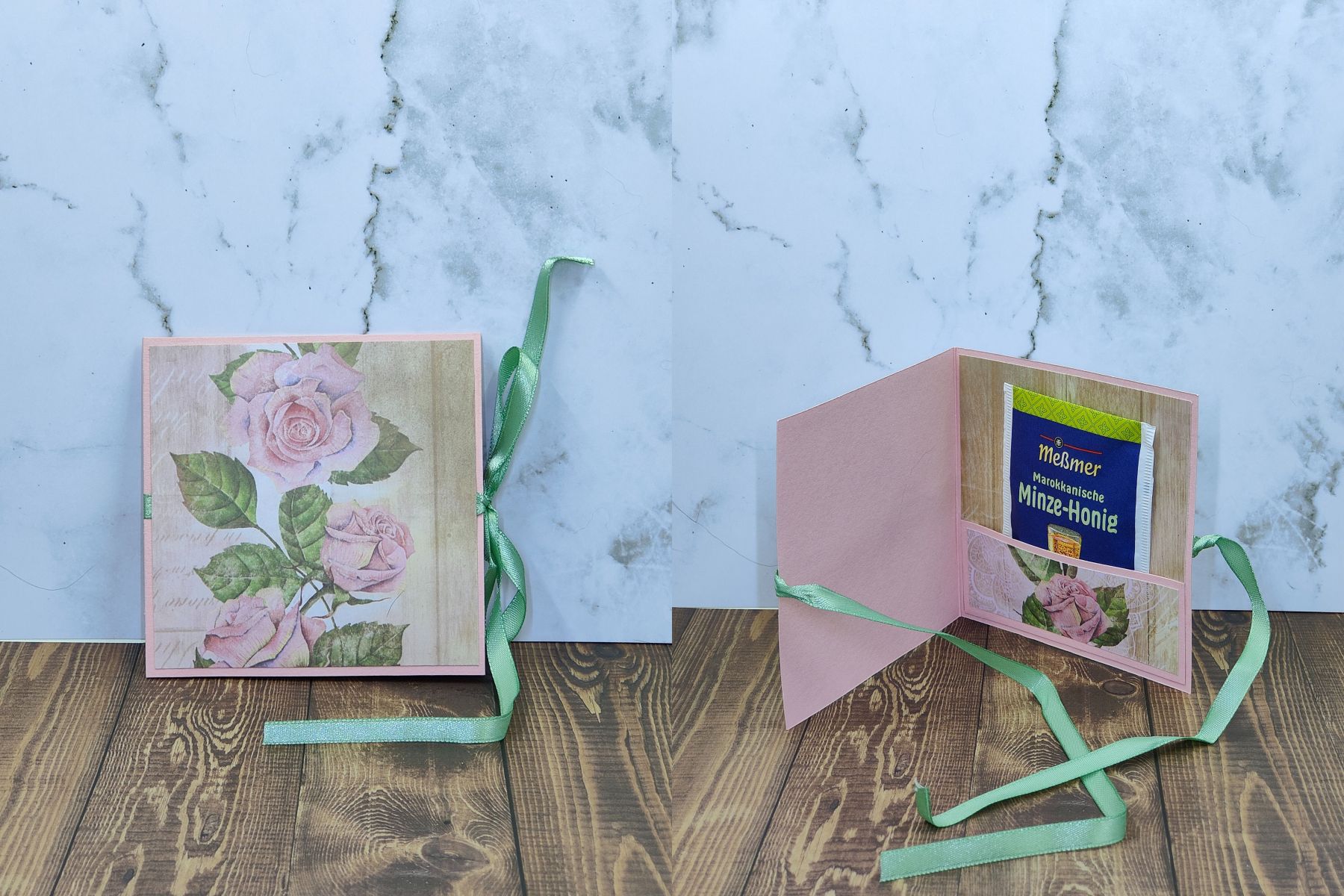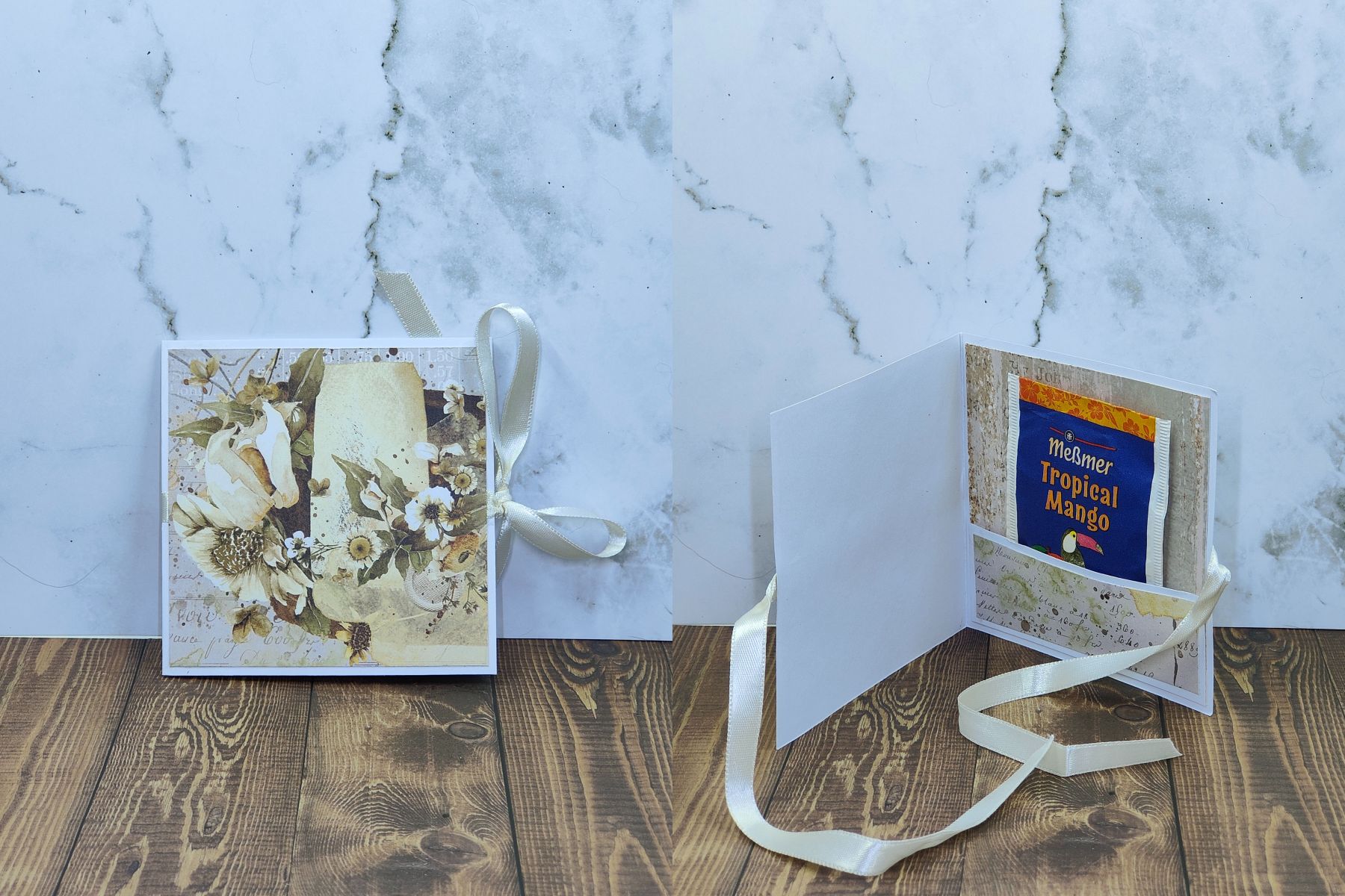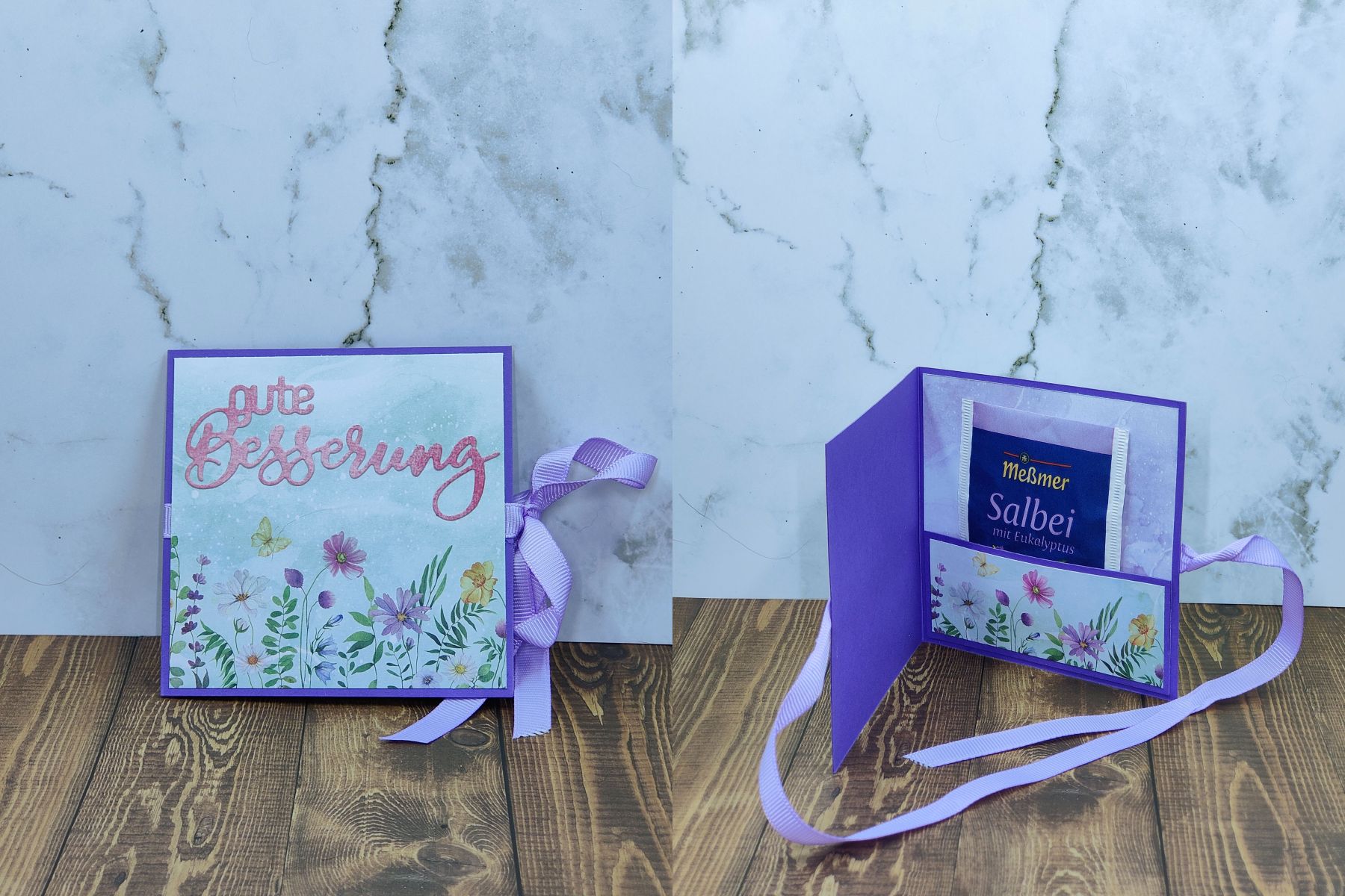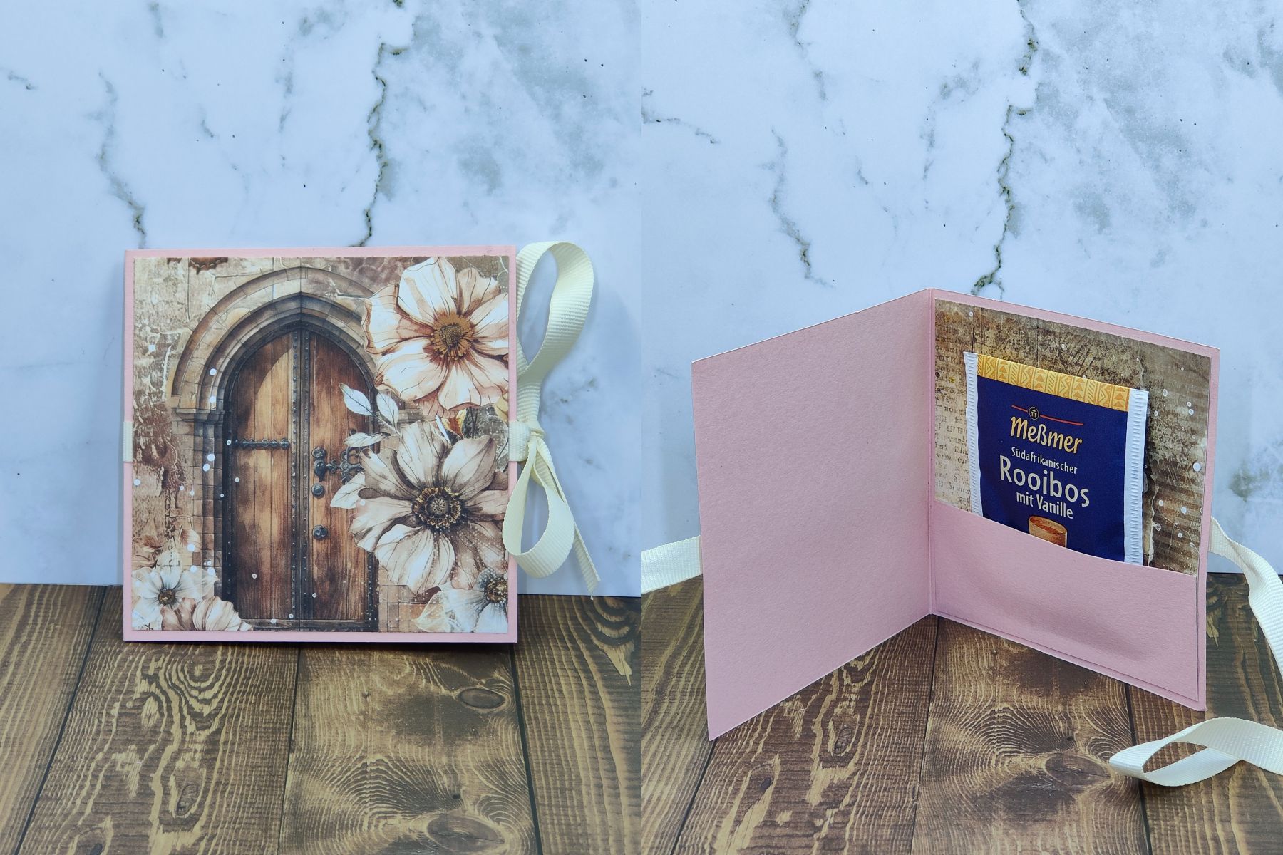 Auch eine Idee als Mitbringsel oder die etwas andere Art von Karte. Es lässt Platz für einen Text, dazu ein Tee und verschlossen mit einem Band oder einer Banderole. Ich wollte etwas mit Teebeutel kreieren, damit die vielen Tee Sorten, (die ich für die Adventskalender jedes Jahr bestelle) noch eine weitere Verwendung finden.