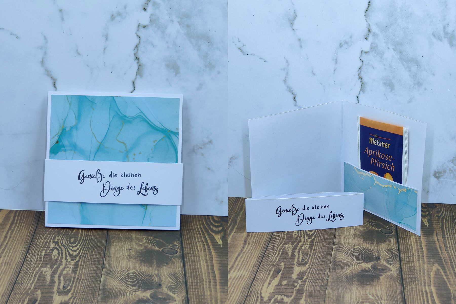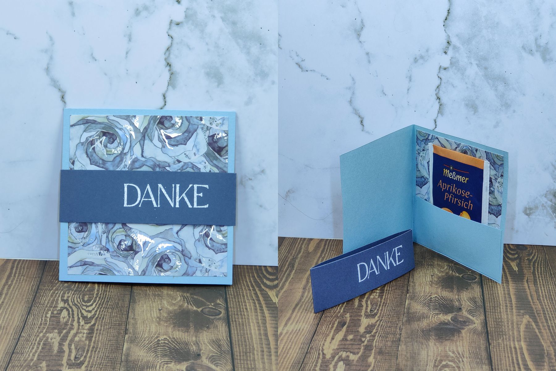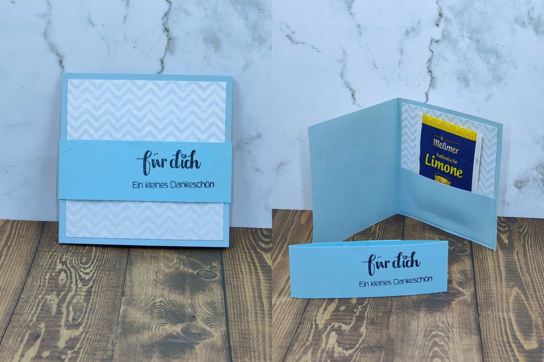 Auch eine Idee als Mitbringsel oder die etwas andere Art von Karte. Es lässt Platz für einen Text, dazu ein Tee und verschlossen mit einem Band oder einer Banderole. Ich wollte etwas mit Teebeutel kreieren, damit die vielen Tee Sorten, (die ich für die Adventskalender jedes Jahr bestelle) noch eine weitere Verwendung finden.